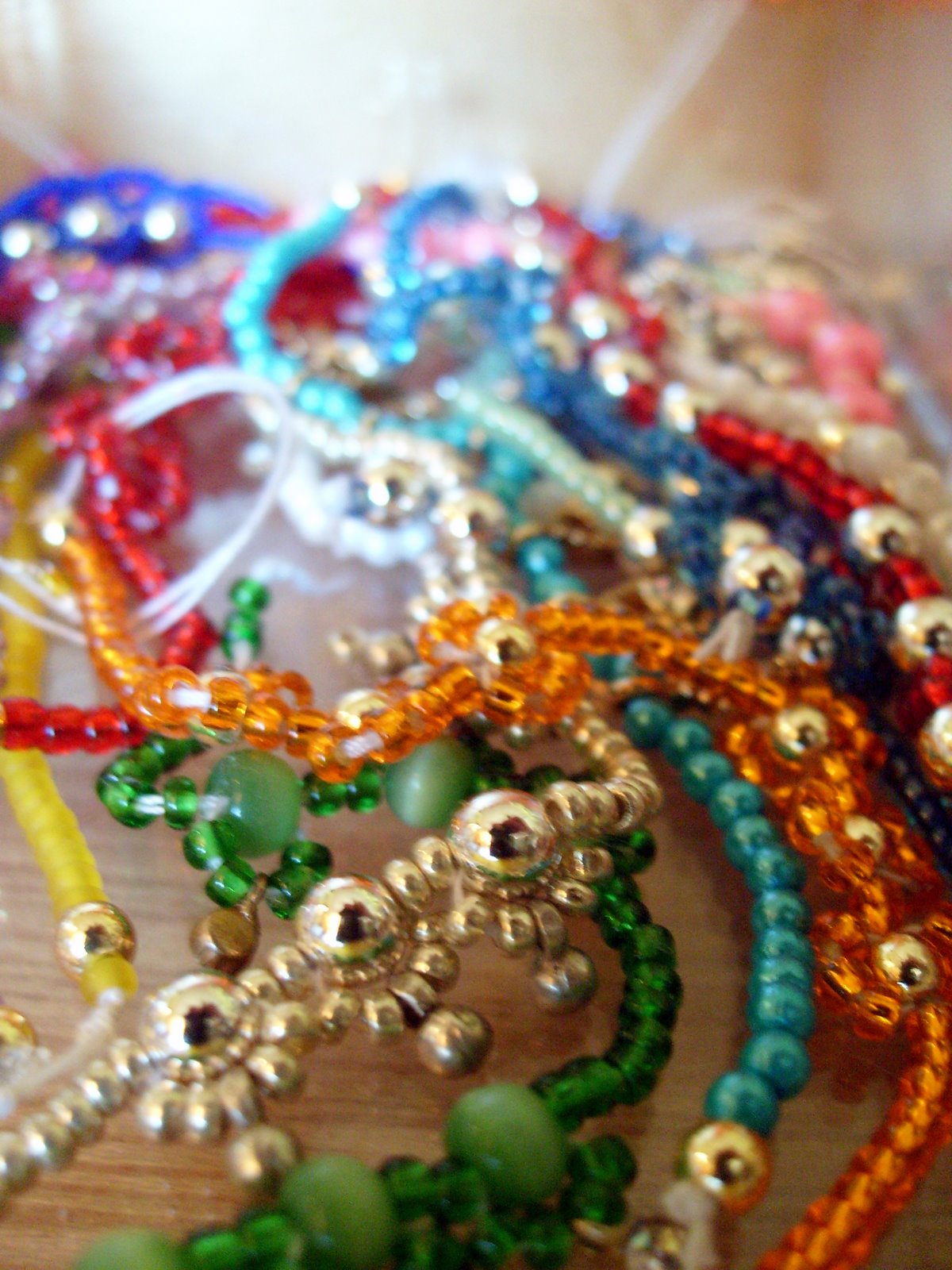 Raghu makes much of his own jewelry for his Deities. These are handmade tikas, chokers, and bracelets for Srimati Radharani.